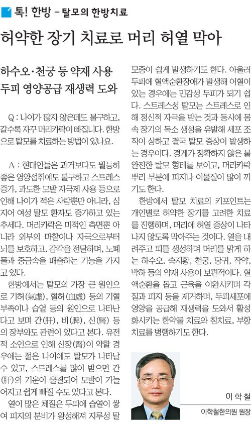 탈모의 한방치료 - (부산내일신문 2011.02.06 855호)