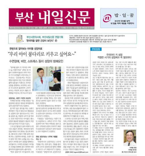 한방으로 알아보는 아이들 성장치료 - (부산 내일신문 751호; 2008.11.23)